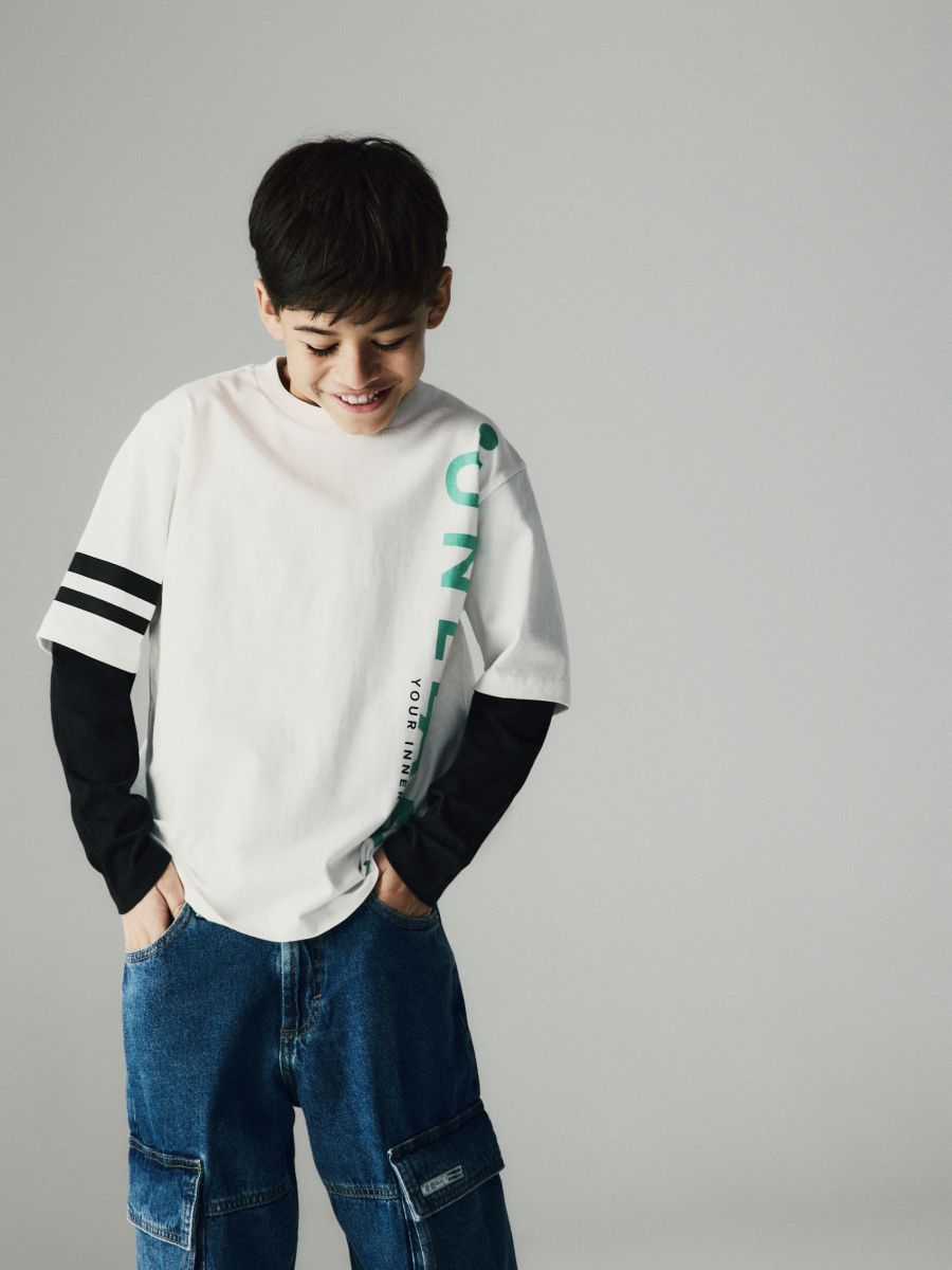 Printed cotton long sleeve T-shirt
