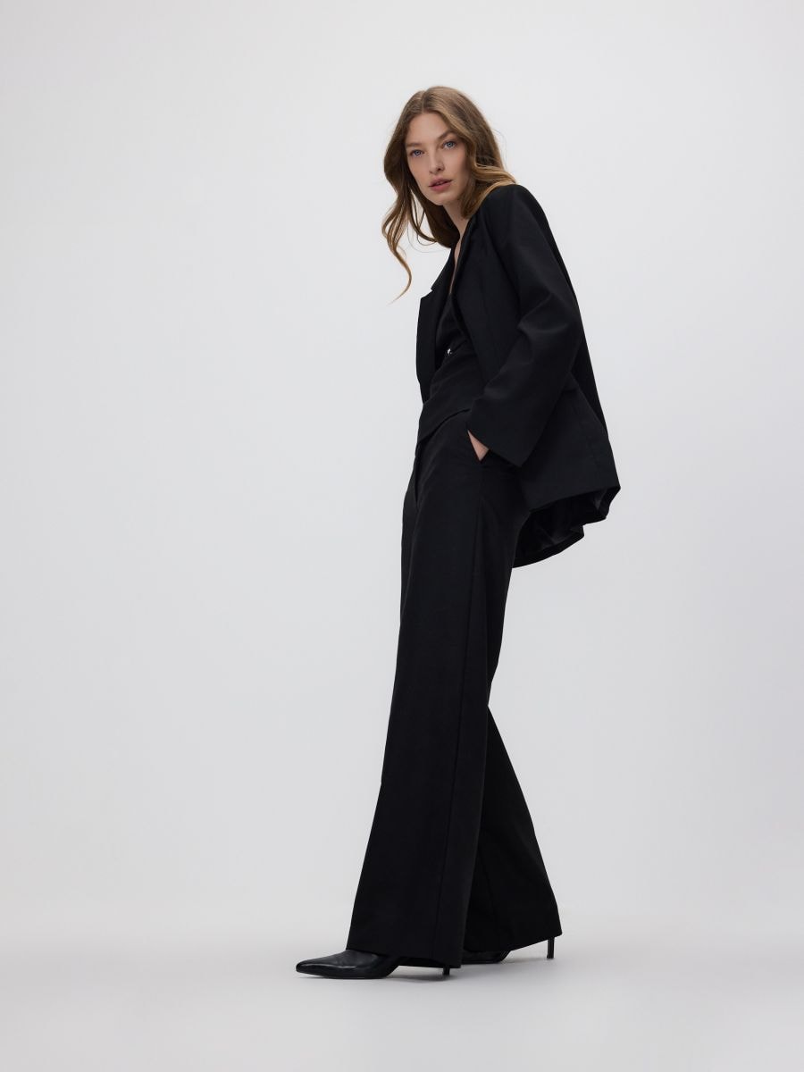 Single-breasted viscose blend blazer - black - RESERVED