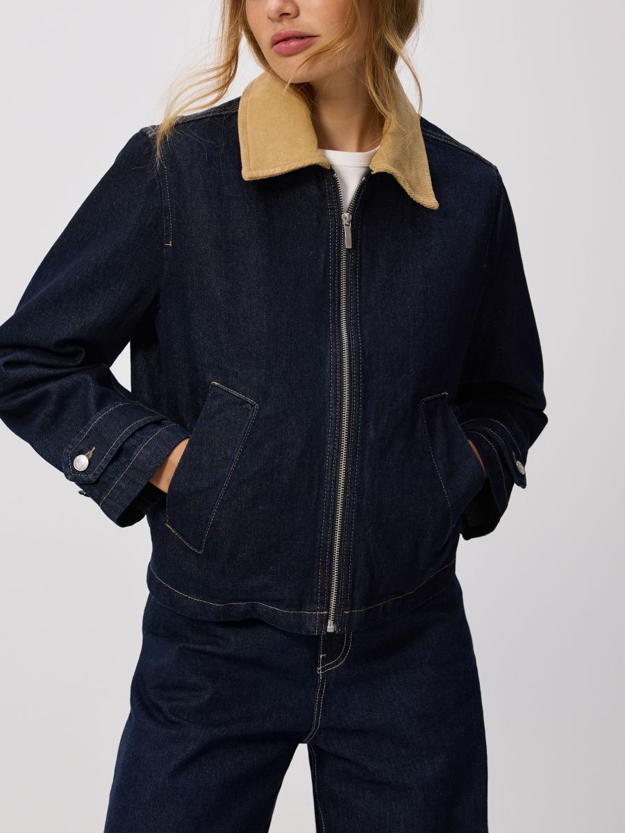 Jeansjacke mit kontrastierendem Kragen