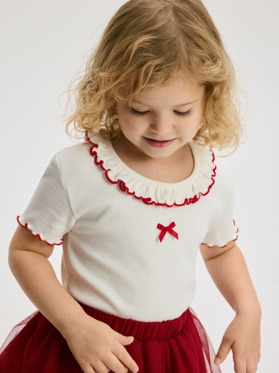 Ribbad blus med volang