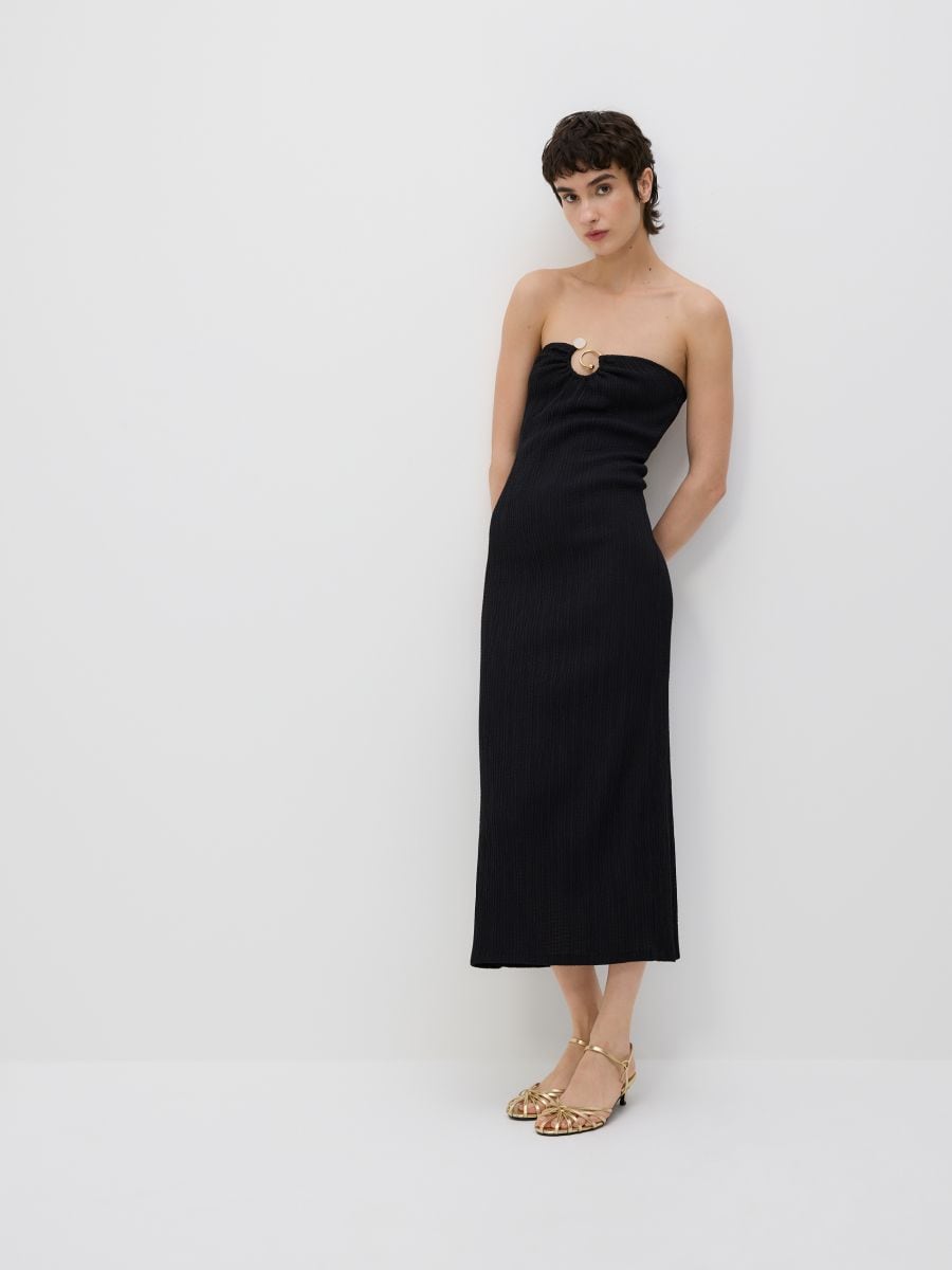Skrynklig midiklänning med detalj